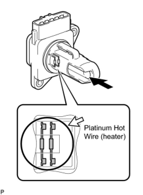 (a) Perform a visual check for any foreign matter on the platinum hot wire (heater) of the mass air flow meter shown in the illustration.