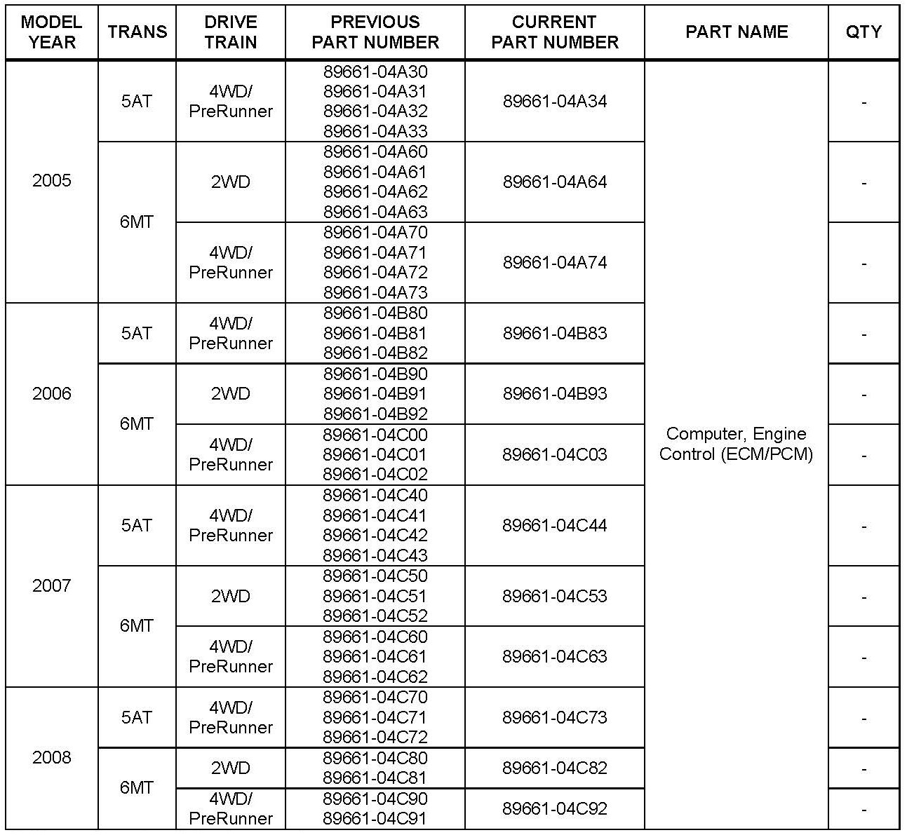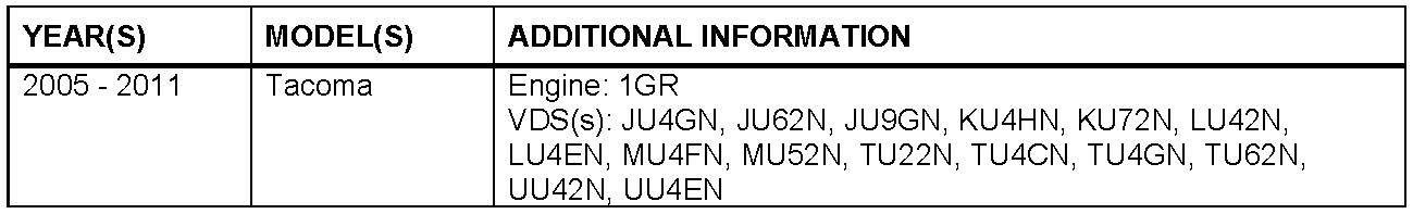 Some 2005 - 2011 model year Tacoma vehicles with a 1GR-FE engine may exhibit a MIL "ON" condition with Diagnostic Trouble Code (DTC) P0456 - Evaporative Emission Control System Leak Detected (Very Small Leak) - when no leak is present. The Engine Control Module/ECM (SAE term Powertrain Control Module/PCM) logic has been modified to reduce the possibility of this condition occurring. Use the following repair procedure to address this condition