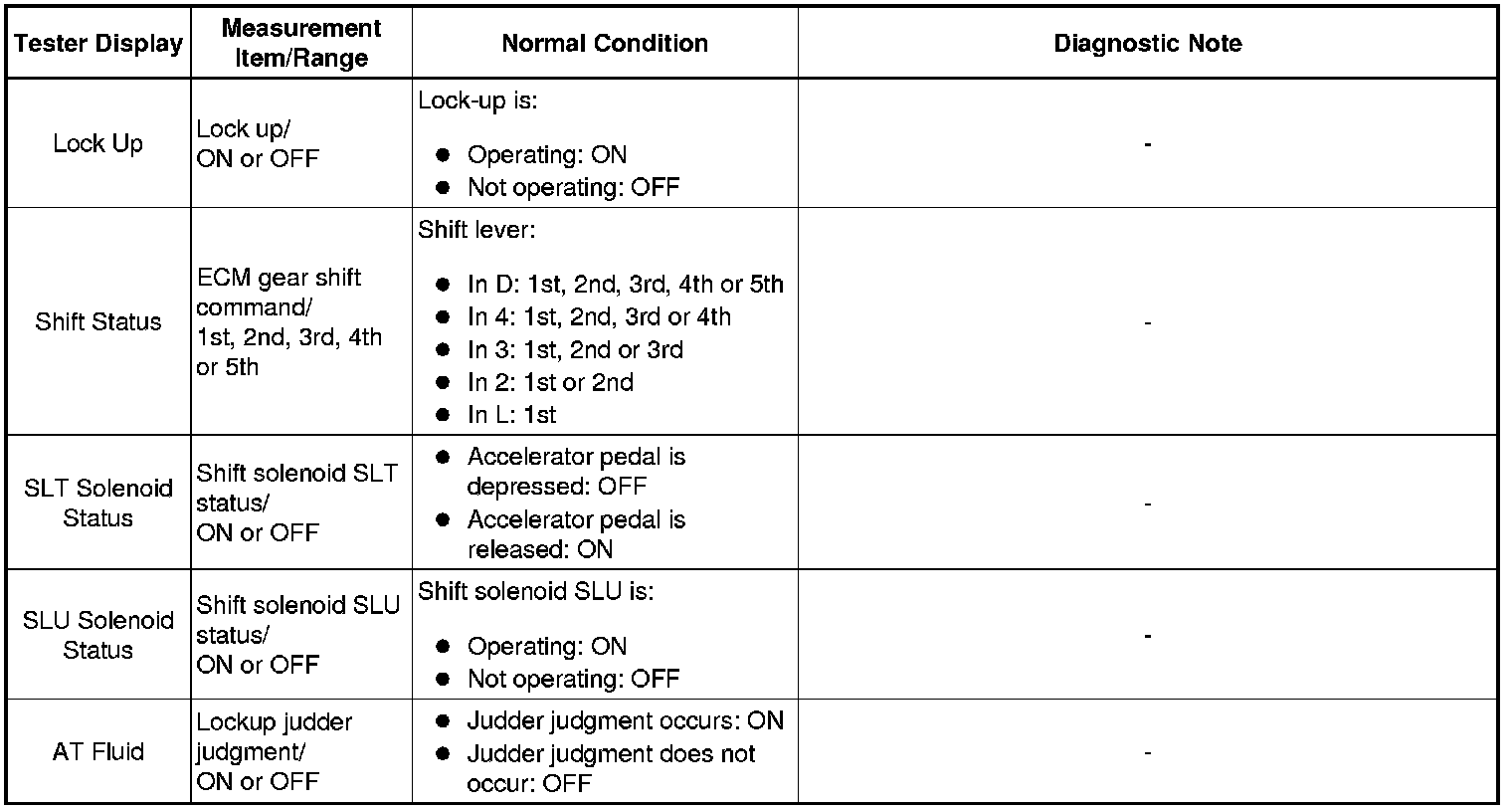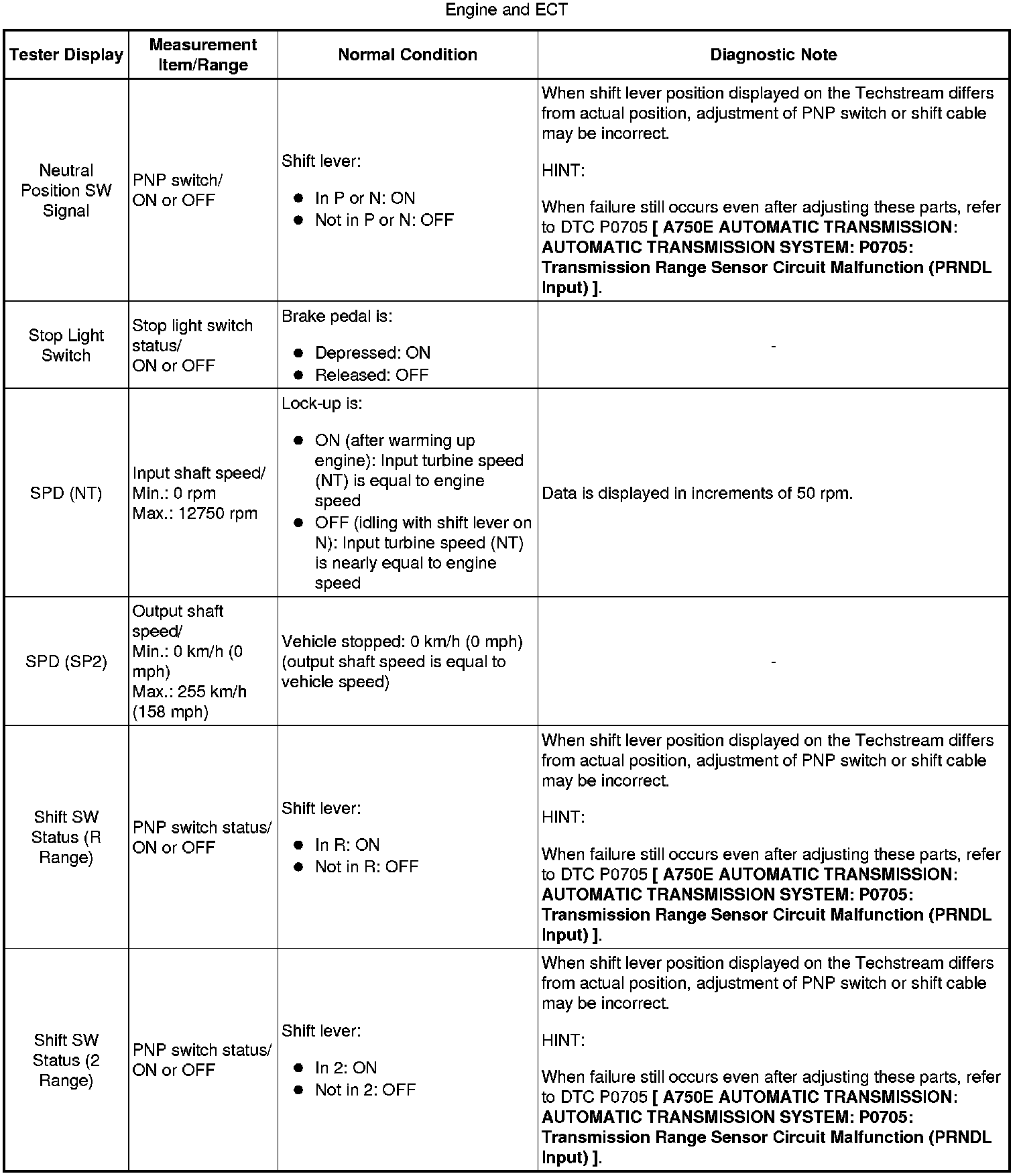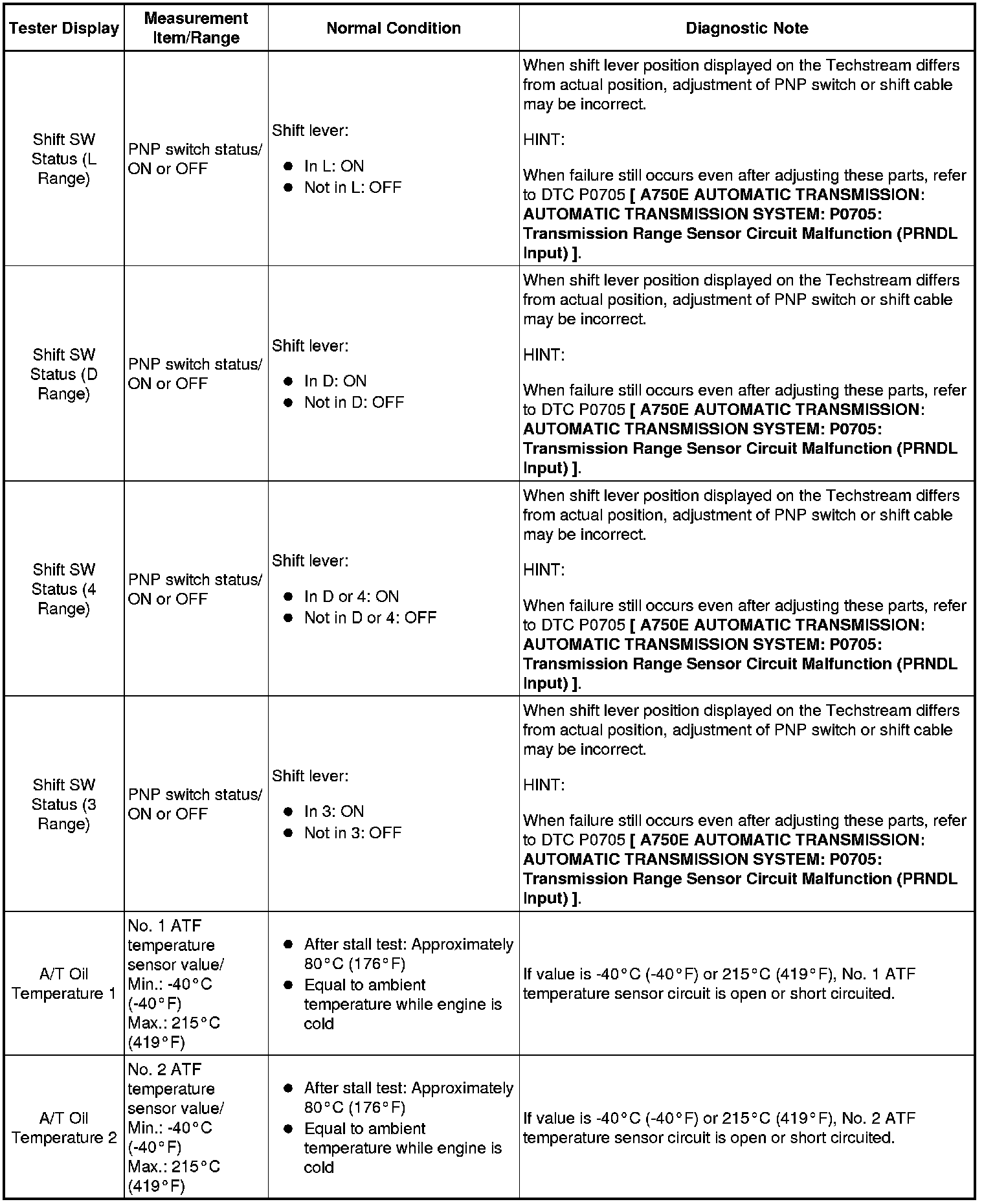 A750E AUTOMATIC TRANSMISSION: AUTOMATIC TRANSMISSION SYSTEM: DATA LIST / ACTIVE TEST