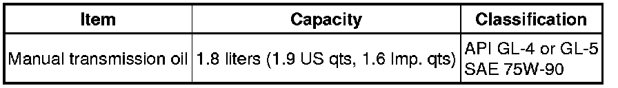 PREPARATION: RA60 MANUAL TRANSMISSION: LUBRICANT