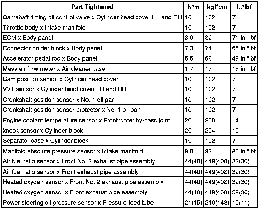 SERVICE SPECIFICATIONS: 1UR-FE ENGINE CONTROL SYSTEM: TORQUE SPECIFICATIONS