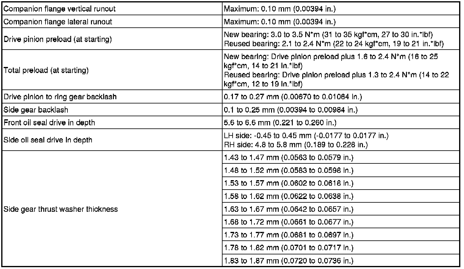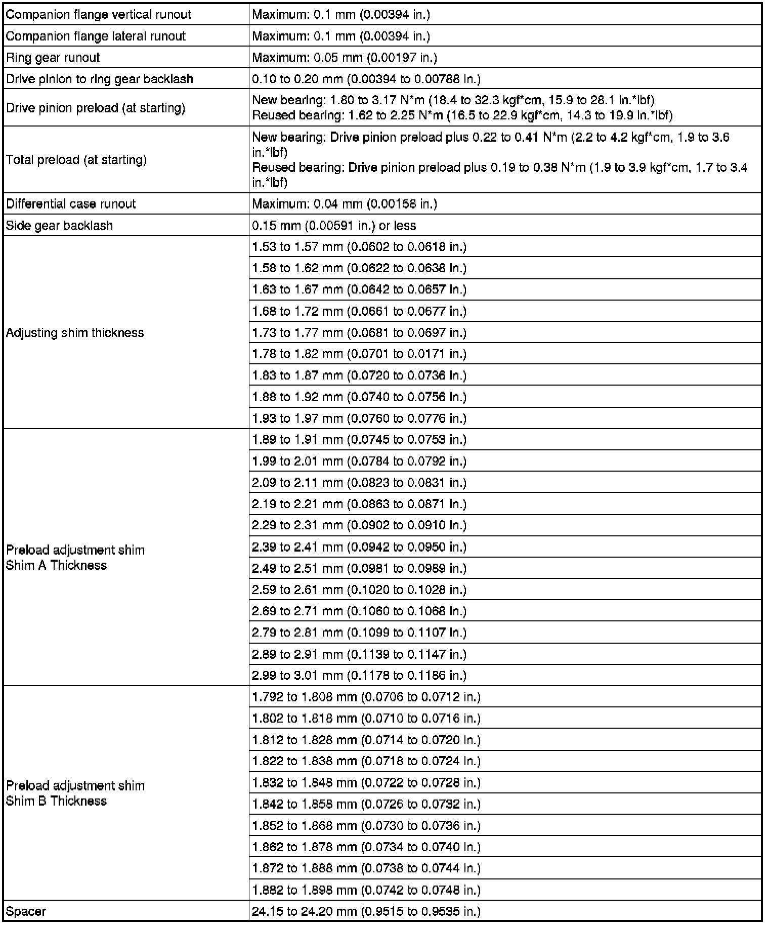 SERVICE SPECIFICATIONS: DIFFERENTIAL: SERVICE DATA