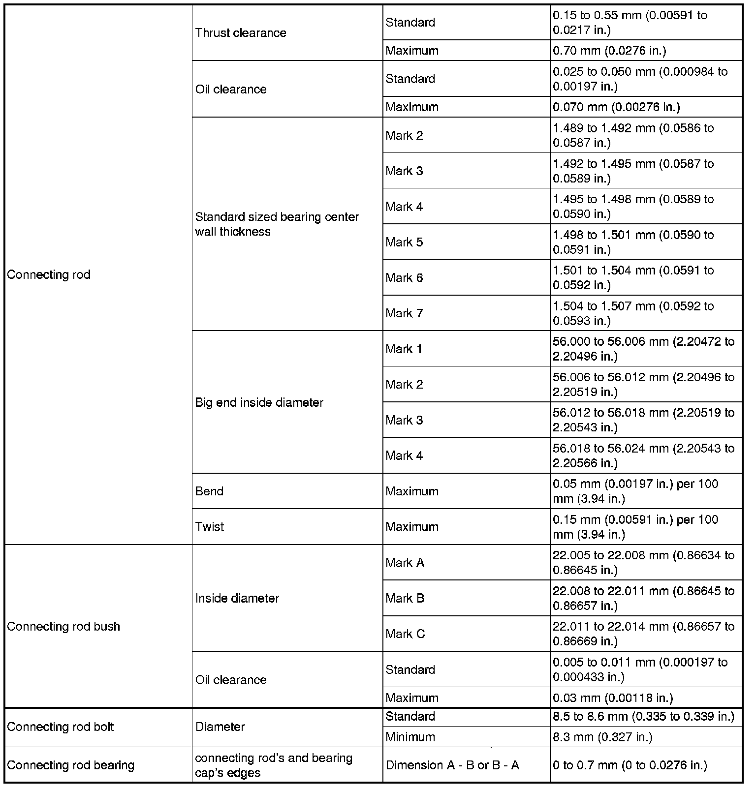 CONNECTING ROD SIDE CLEARANCE, OUT-OF-ROUND, & DIAMETER