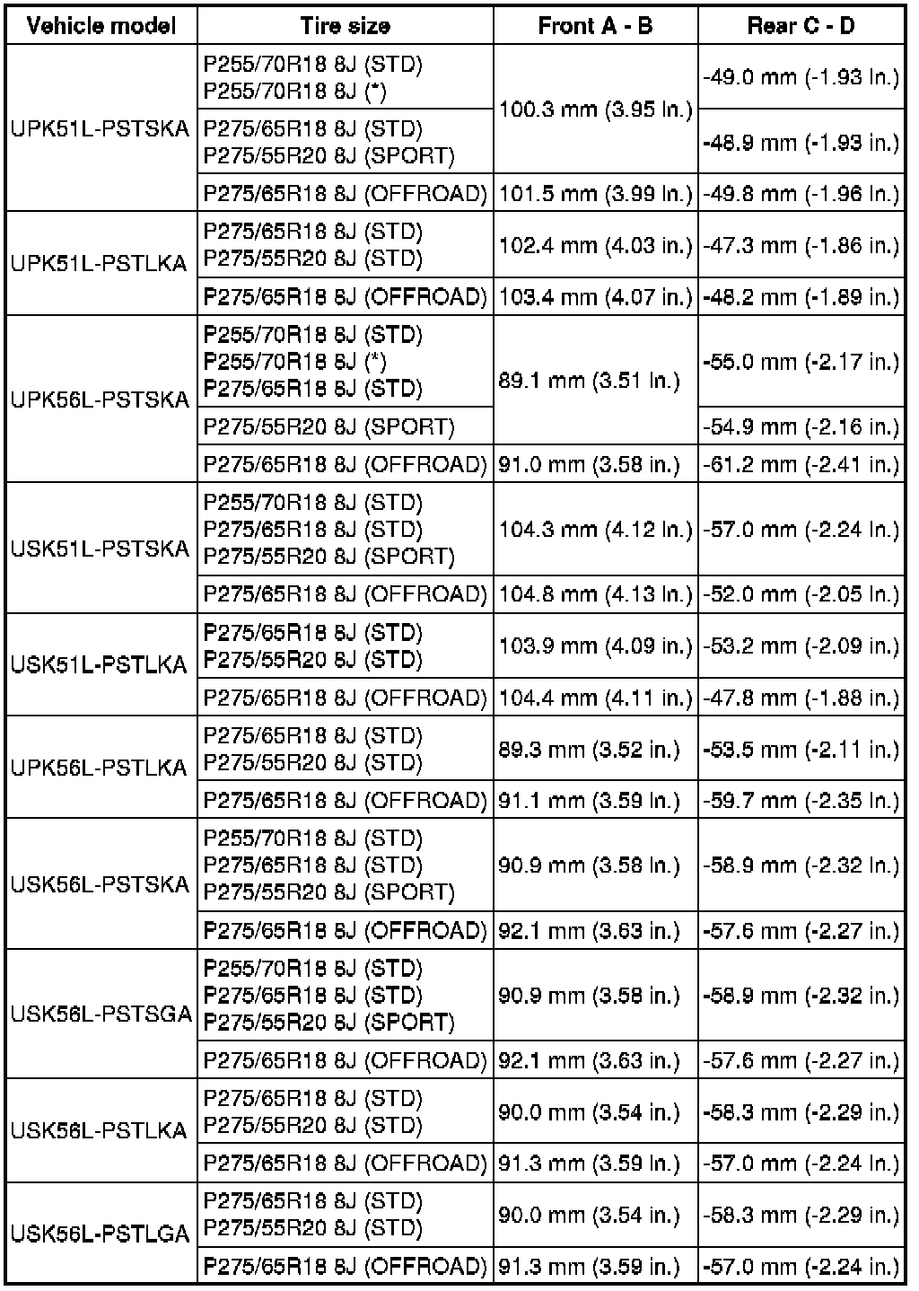 SERVICE SPECIFICATIONS: SUSPENSION: SERVICE DATA