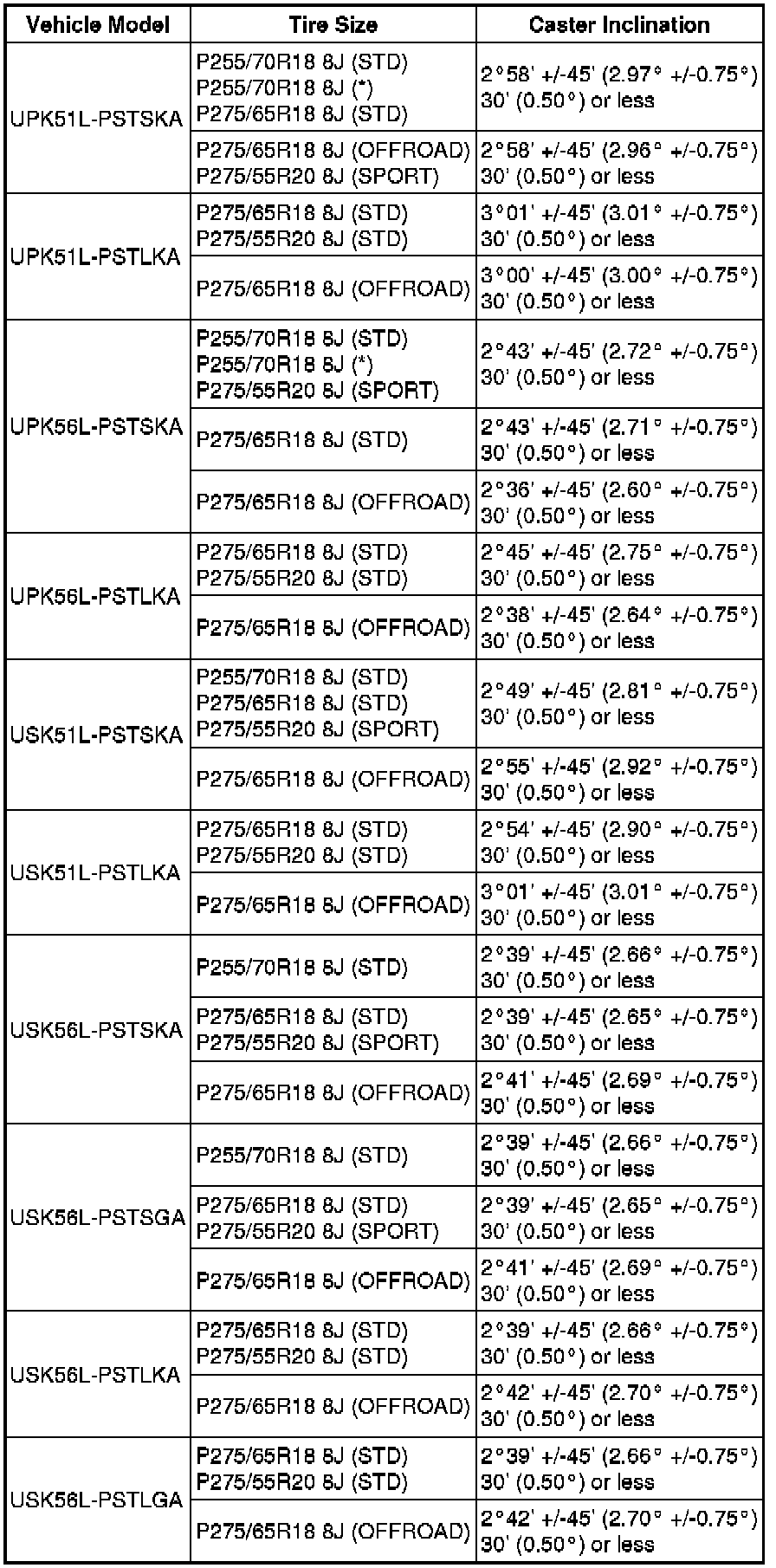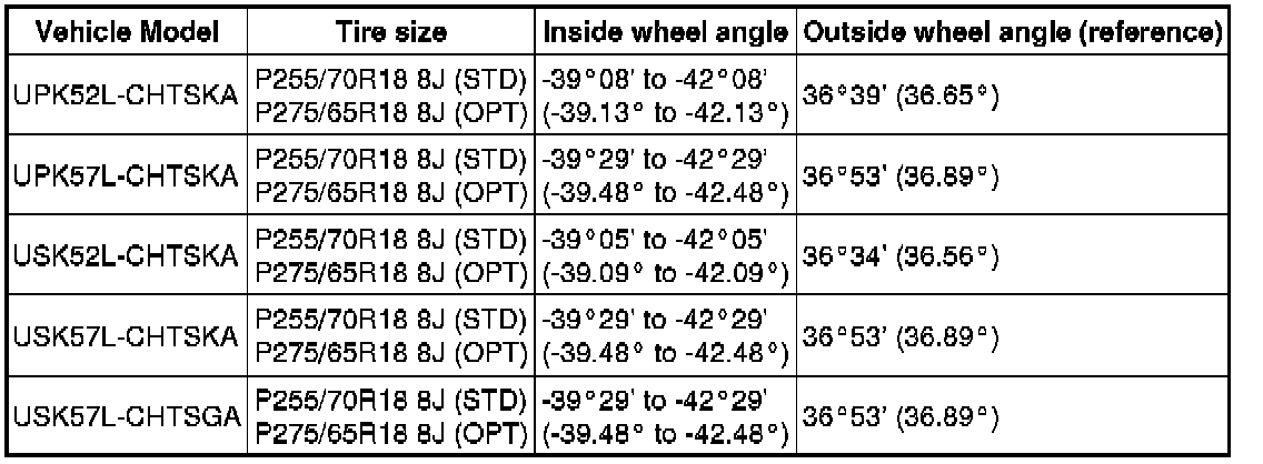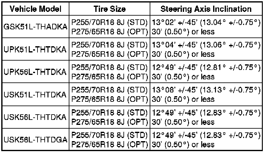 Standard Steering Angle Inclination