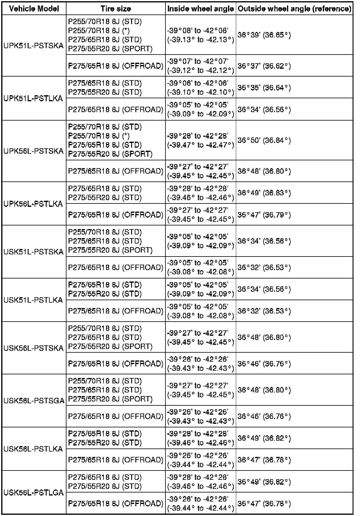 Standard Wheel Angle