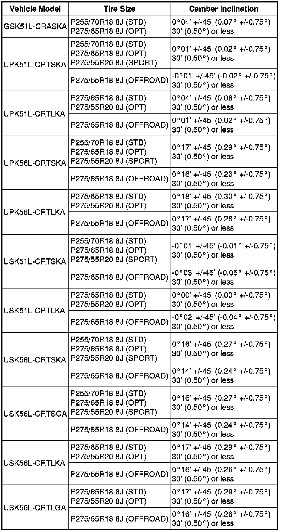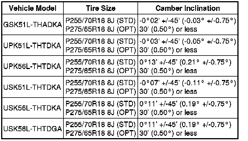 Standard Camber Inclination