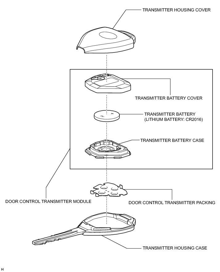 DOOR LOCK: DOOR CONTROL TRANSMITTER (w/o Smart Key System): COMPONENTS