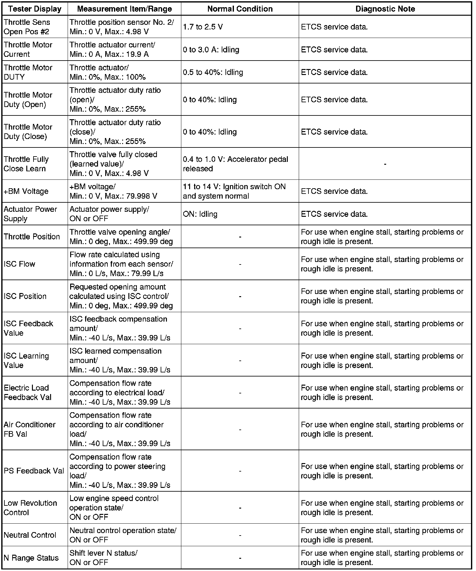 *: This excludes the throttle valve opening percentage due to Idle Speed Control (ISC).