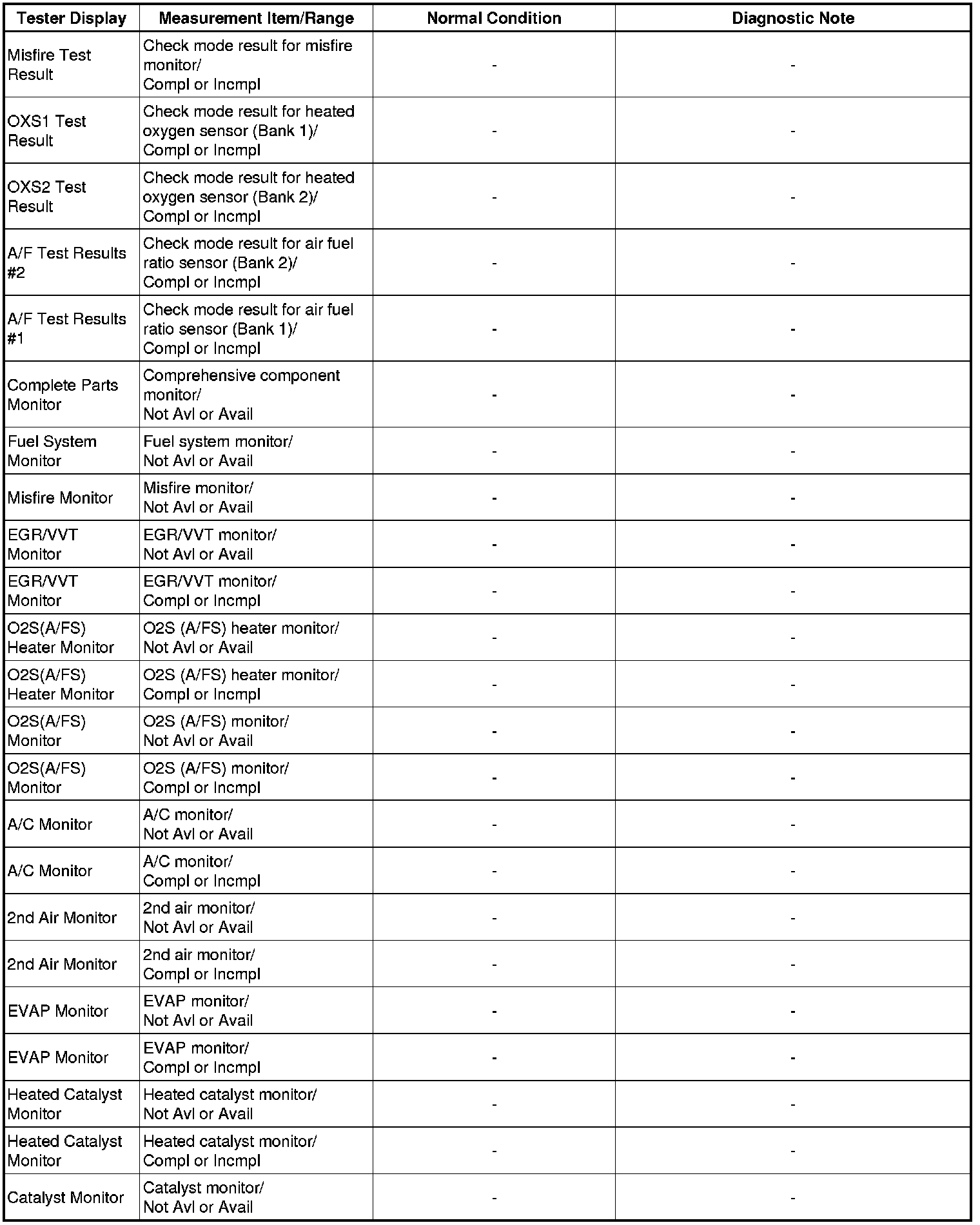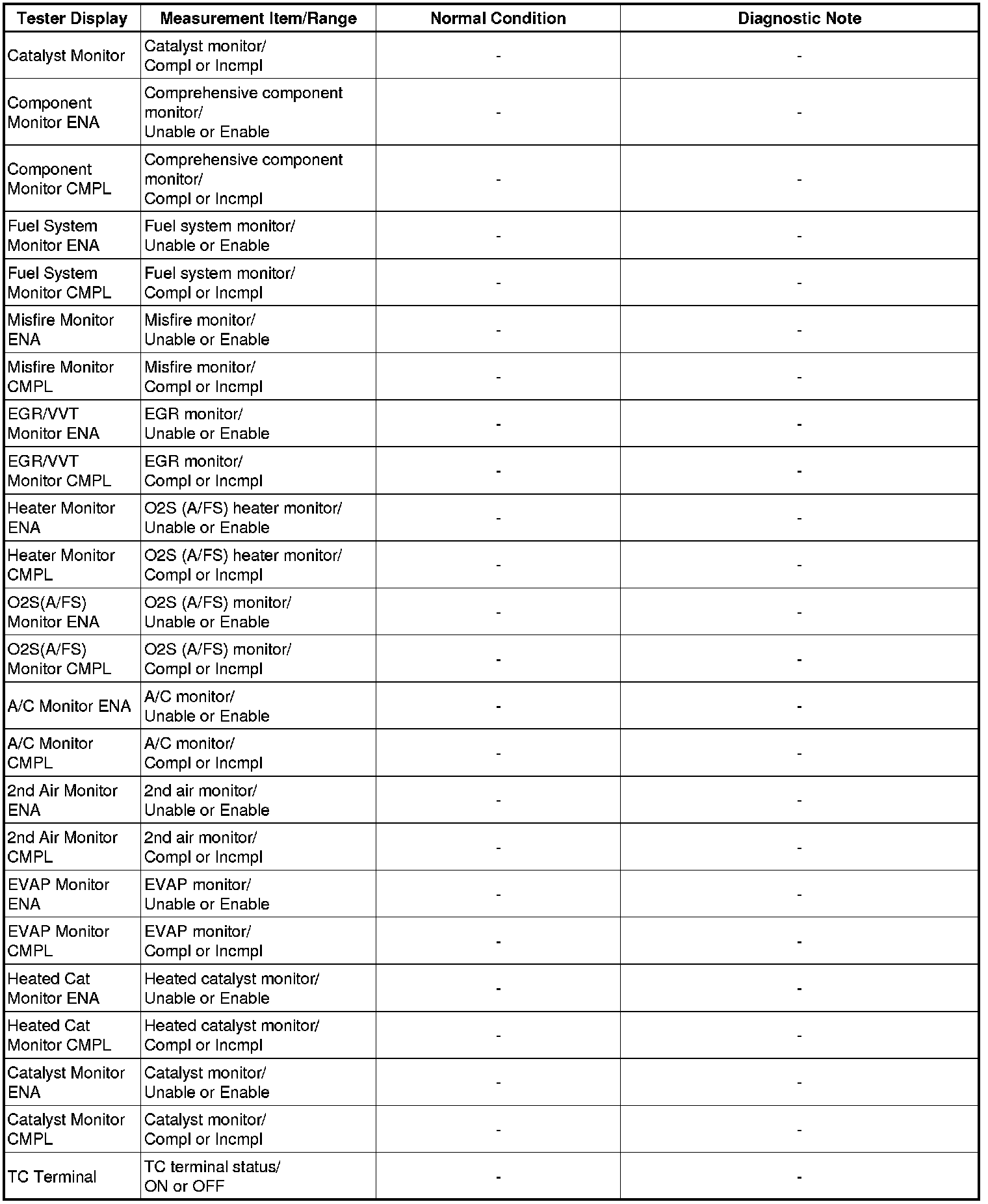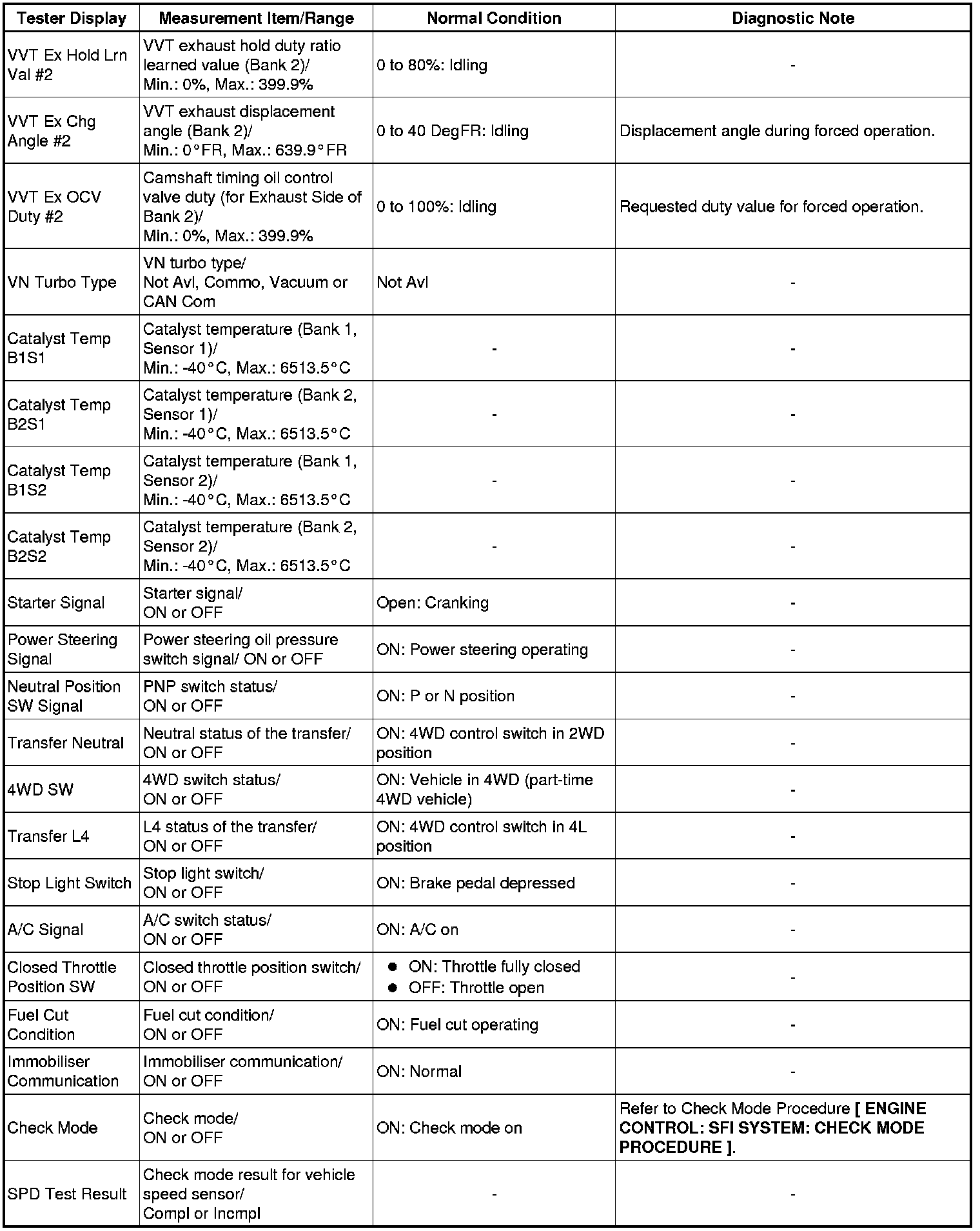 Normal Condition: If no conditions are specifically stated for "idling", the shift lever should be in N or P, the A/C switch should be off and all accessory switches should be off.