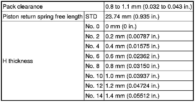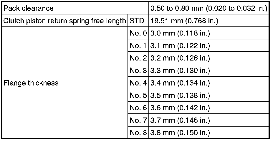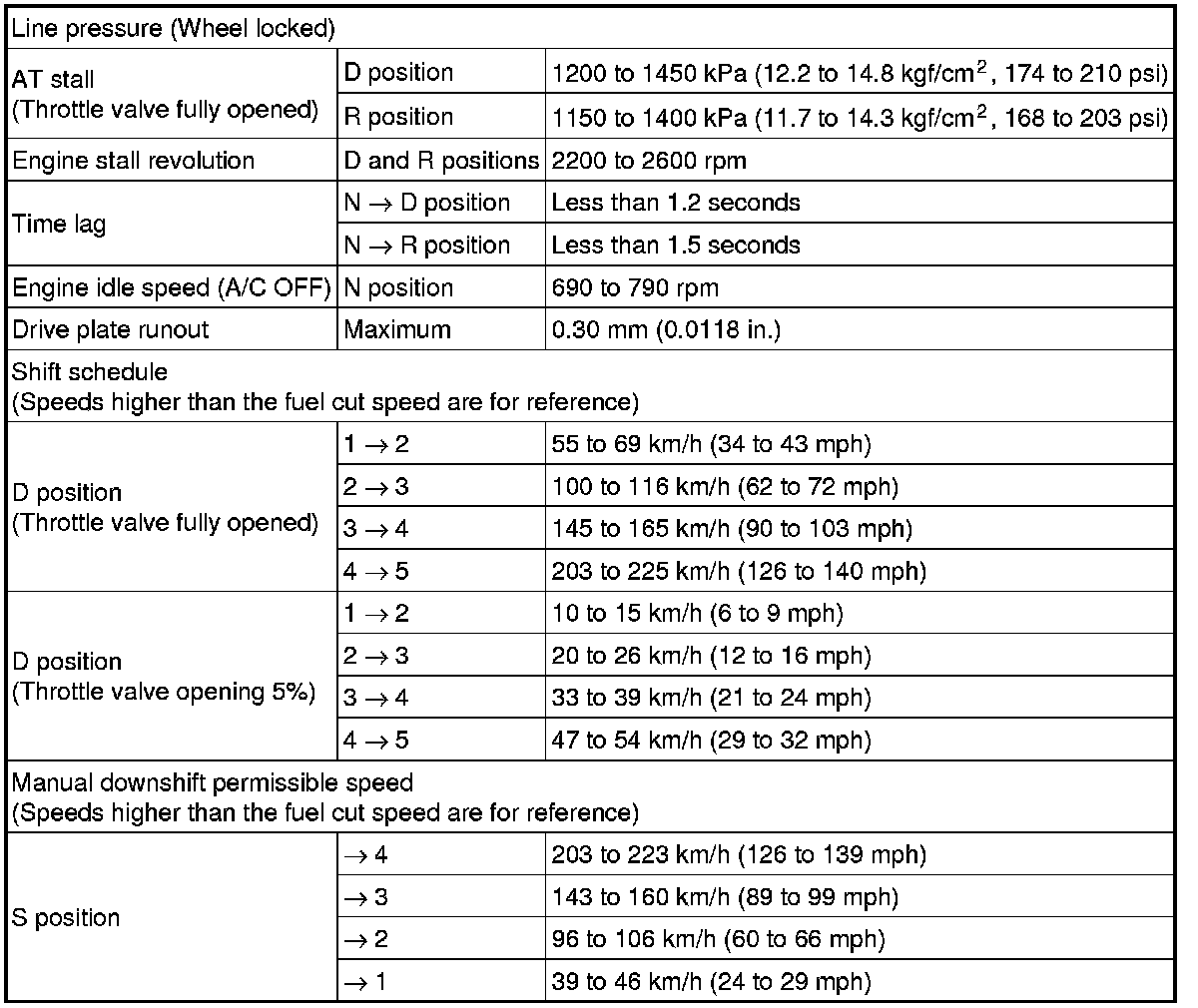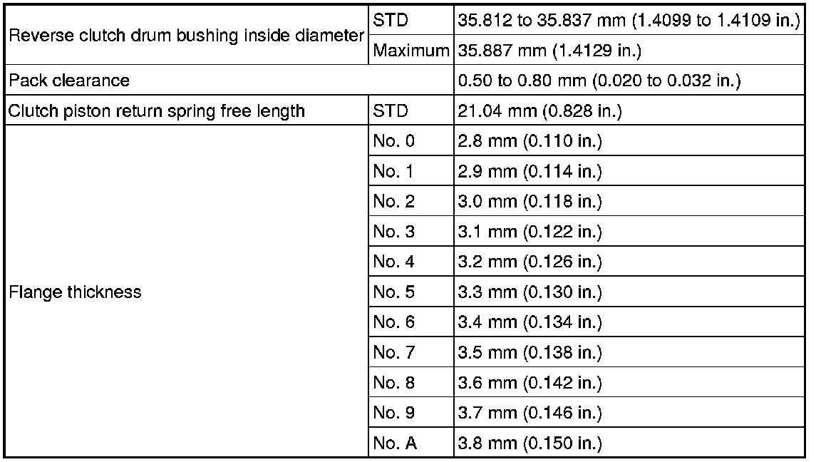 SPECIFICATIONS: A750E AUTOMATIC TRANSMISSION / TRANSAXLE: SERVICE DATA