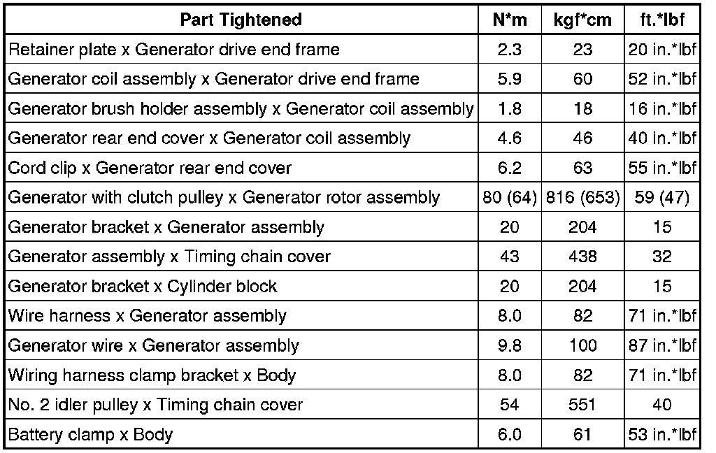 SPECIFICATIONS: 1GR-FE BATTERY / CHARGING: TORQUE SPECIFICATIONS