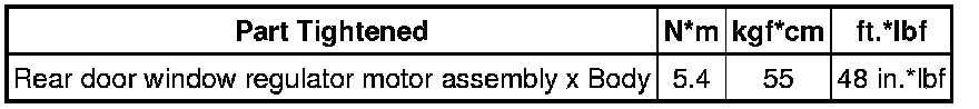 SPECIFICATIONS: WINDOW / GLASS: TORQUE SPECIFICATIONS