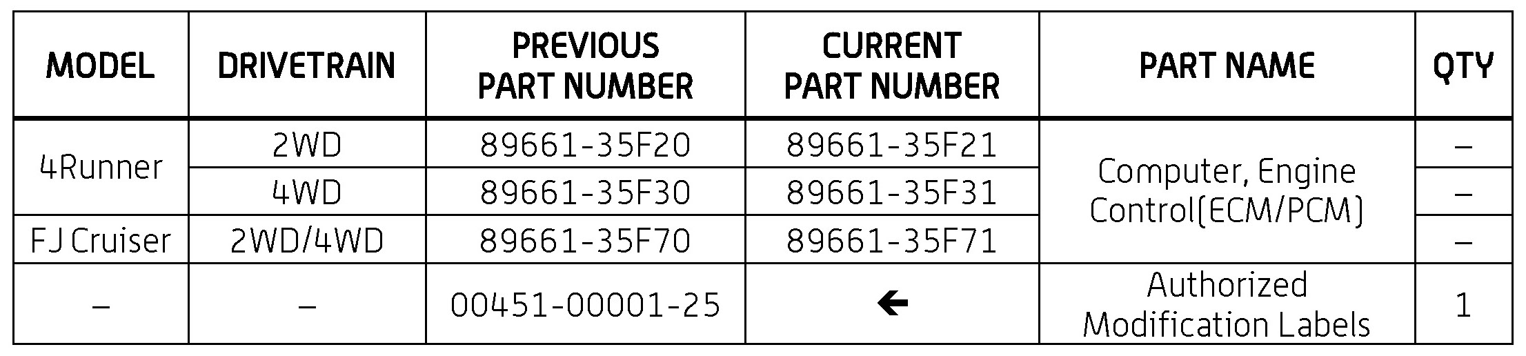 - ECU part number [Refer to the Parts Information section for the CURRENT PART NUMBER]
