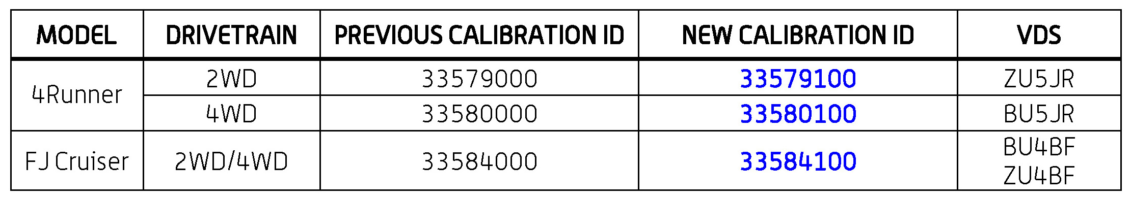 - Calibration ID(s) [Refer to the Calibration Identification Chart for the NEW CALIBRATION ID]