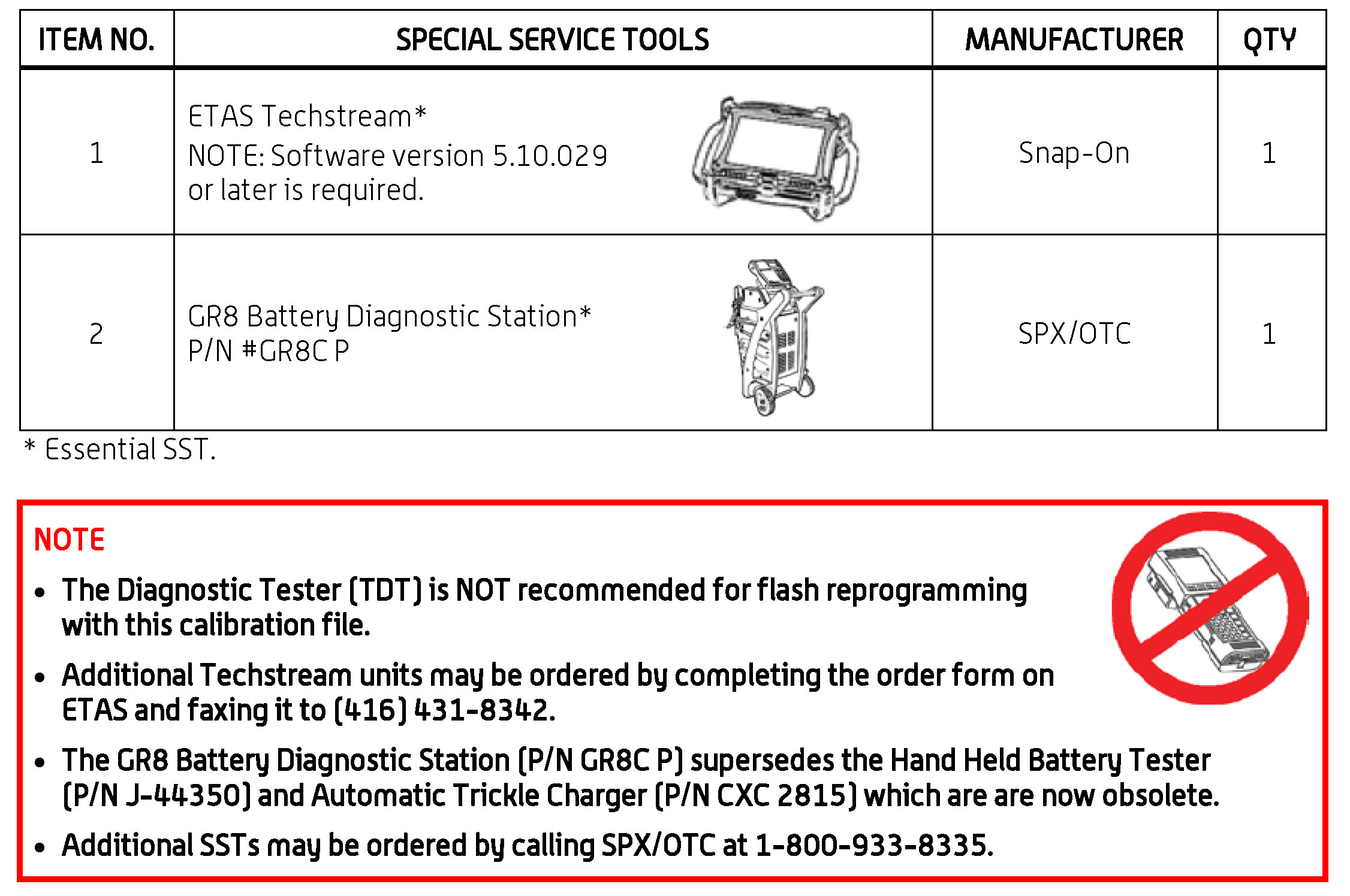 - For details on how to use the GR8 Battery Diagnostic Station, refer to the GR8 Battery Diagnostic Station Instruction Manual located on ETAS/TIS library > Tools > tools and equipment > GR8 Battery Diagnostic Station Instruction Manual.