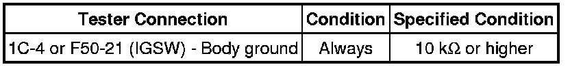 C -- CHECK HARNESS AND CONNECTOR (NO. 1 INTEGRATION RELAY (IG2) - IGNITION SWITCH ASSEMBLY)