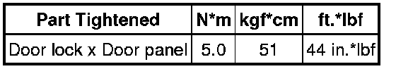 SPECIFICATIONS: DOOR LOCK: TORQUE SPECIFICATIONS