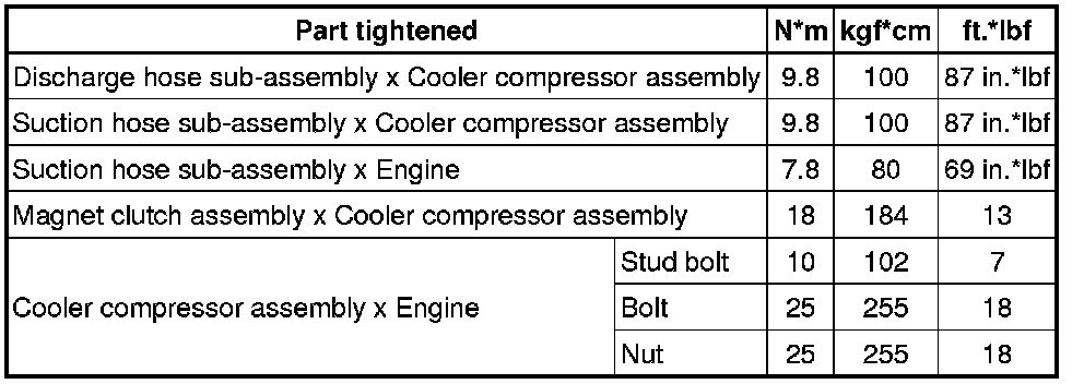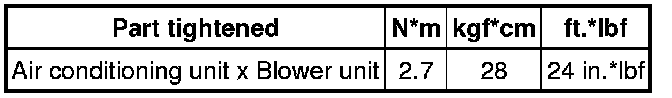 SPECIFICATIONS: HEATING / AIR CONDITIONING: TORQUE SPECIFICATIONS