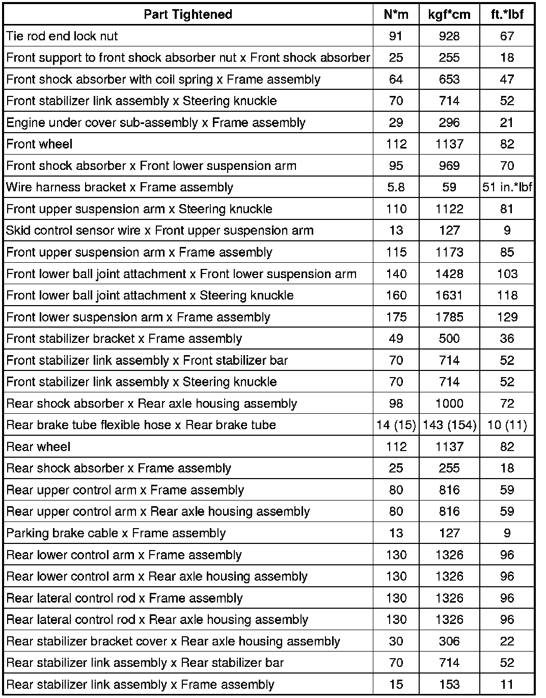 : TORQUE SPECIFICATIONS