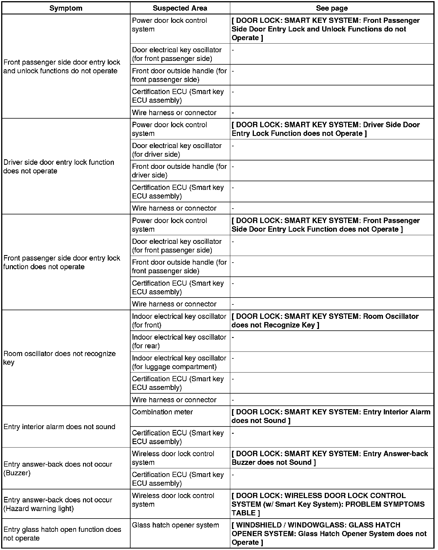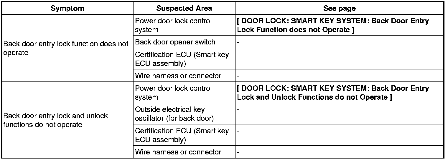 DOOR LOCK: SMART KEY SYSTEM: PROBLEM SYMPTOMS TABLE