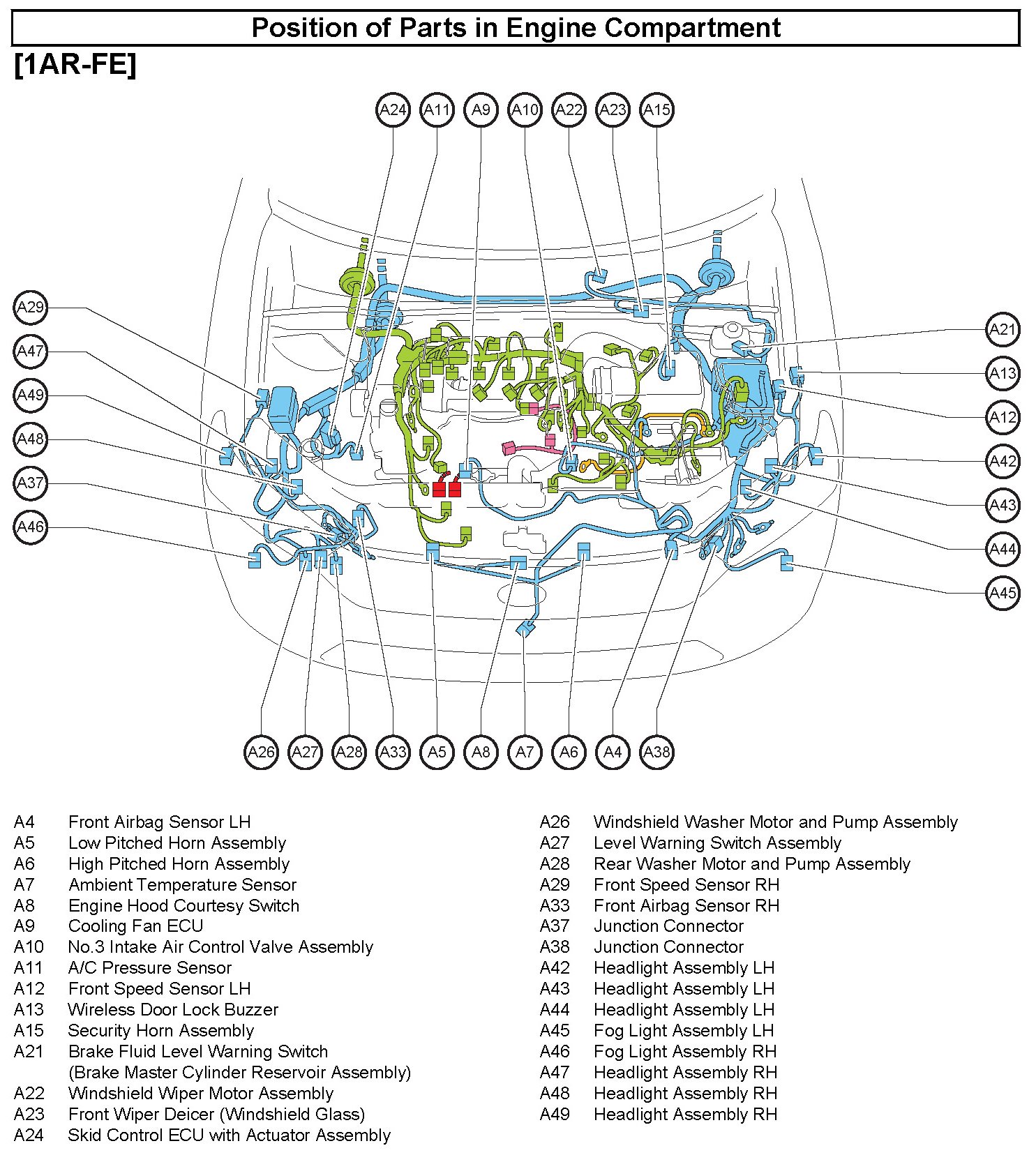 Position of Parts In Engine Compartment