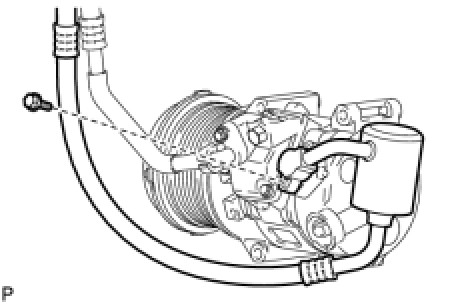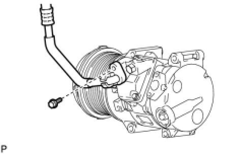 (a) Remove the bolt and disconnect the discharge hose sub-assembly from the compressor and pulley.