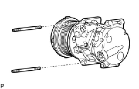 (c) Using a "TORX" socket wrench (E8), remove the 2 stud bolts and the compressor assembly with pulley.
