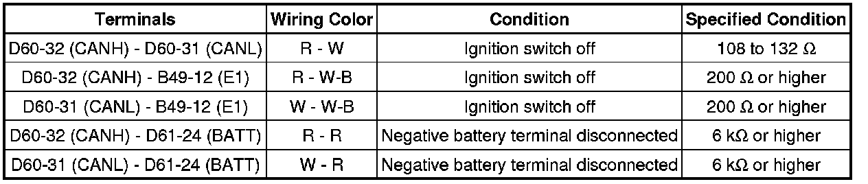 * Before measuring the resistance, leave the vehicle as is for at least 1 minute and do not operate the ignition switch, any other switches, or the doors. If any doors need to be opened in order to check the connectors, open the doors and leave them open.