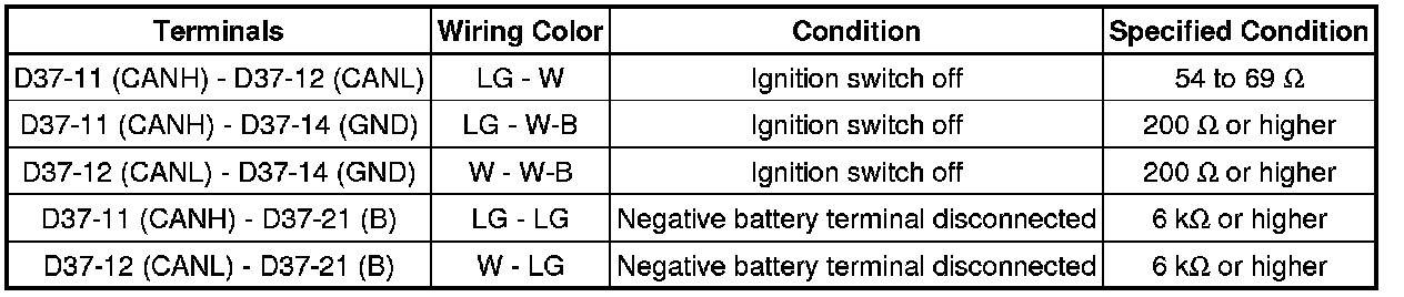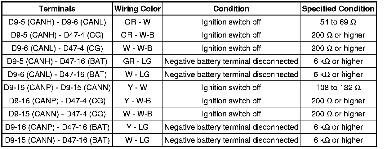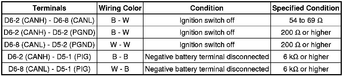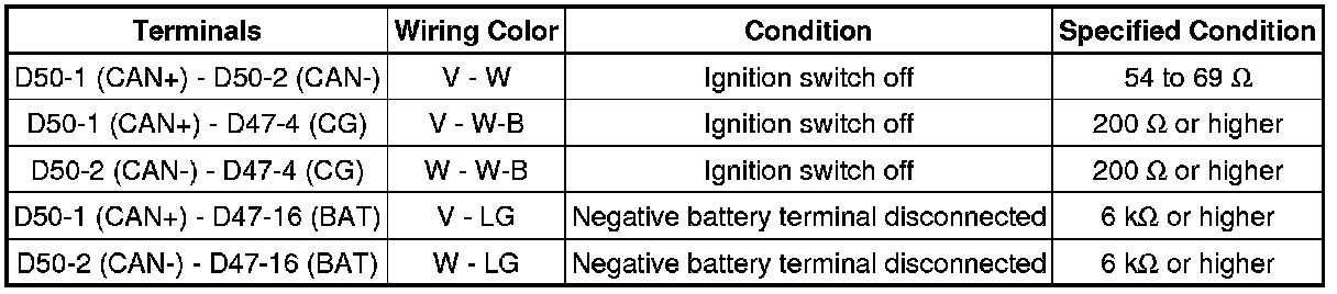 * Turn the ignition switch off before measuring the resistances of CAN bus main wires and CAN bus branch wires.