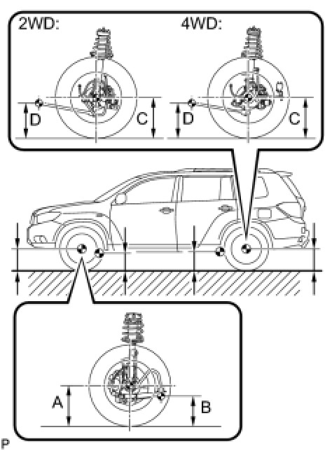 * Before inspecting the wheel alignment, adjust the vehicle height to the specified value.