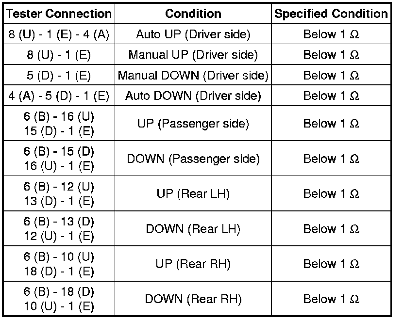 WINDSHIELD / WINDOWGLASS: POWER WINDOW MASTER SWITCH: INSPECTION