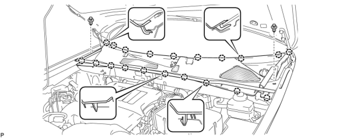 (b) Disengage the 20 claws and remove the cowl top ventilator louver sub-assembly.