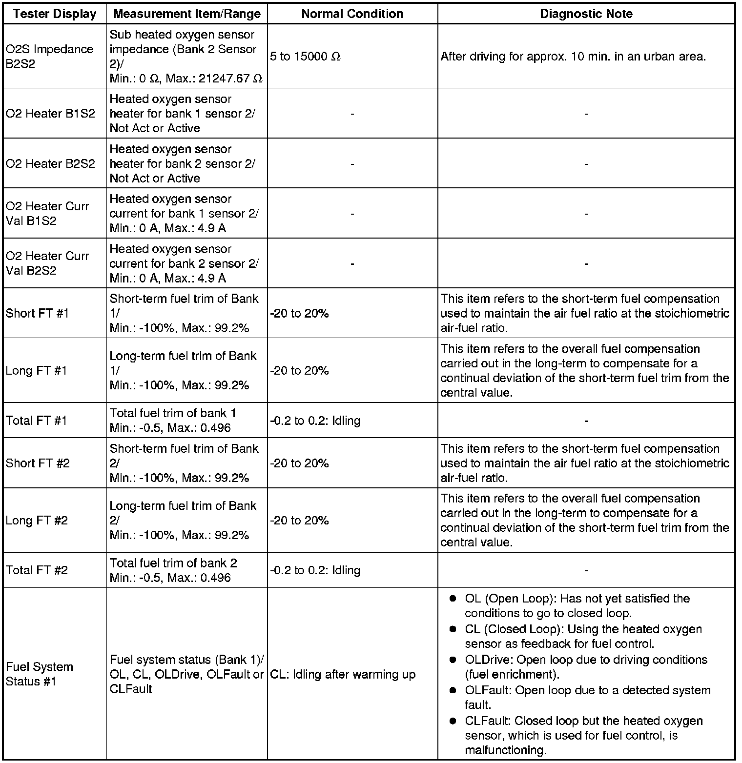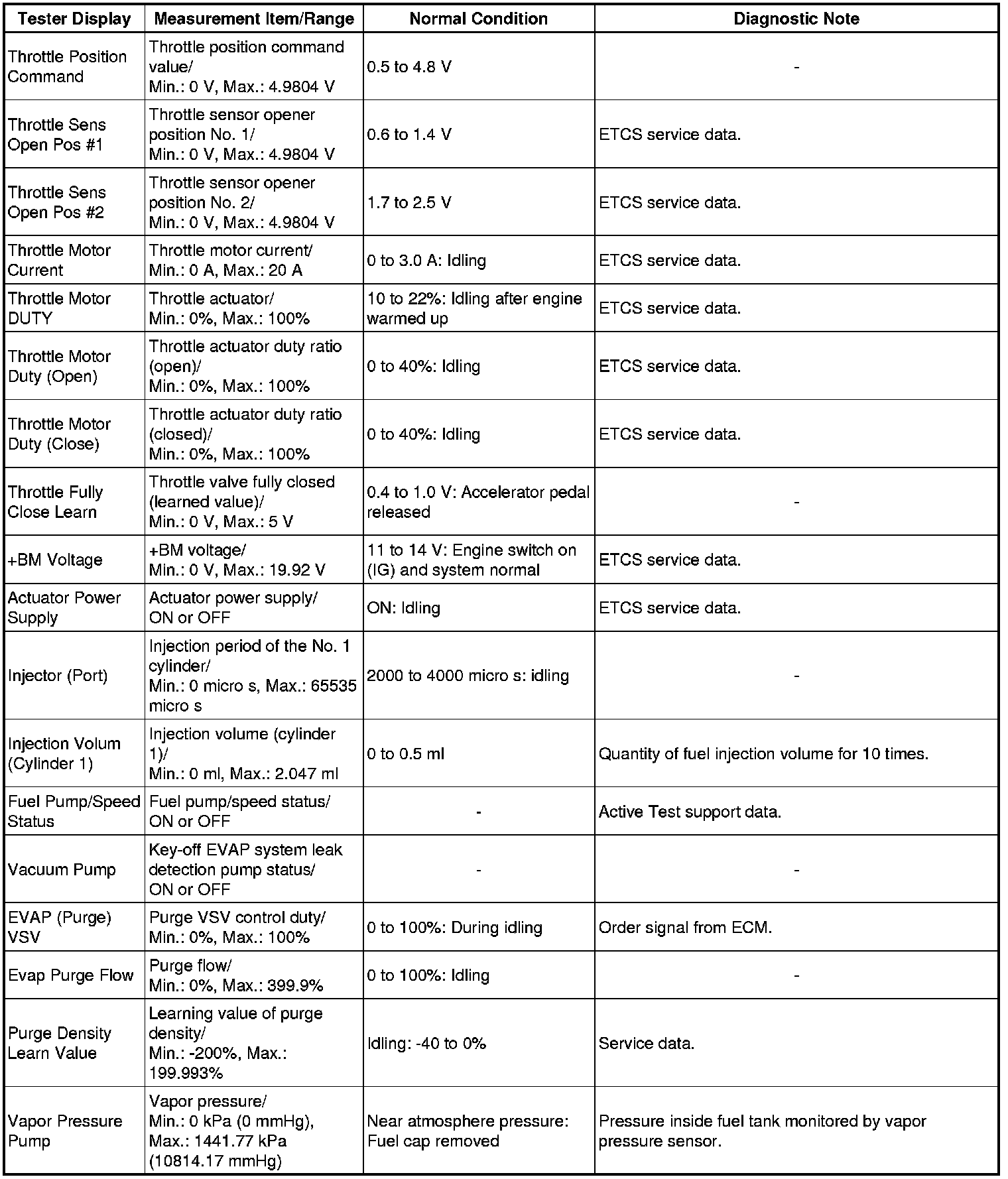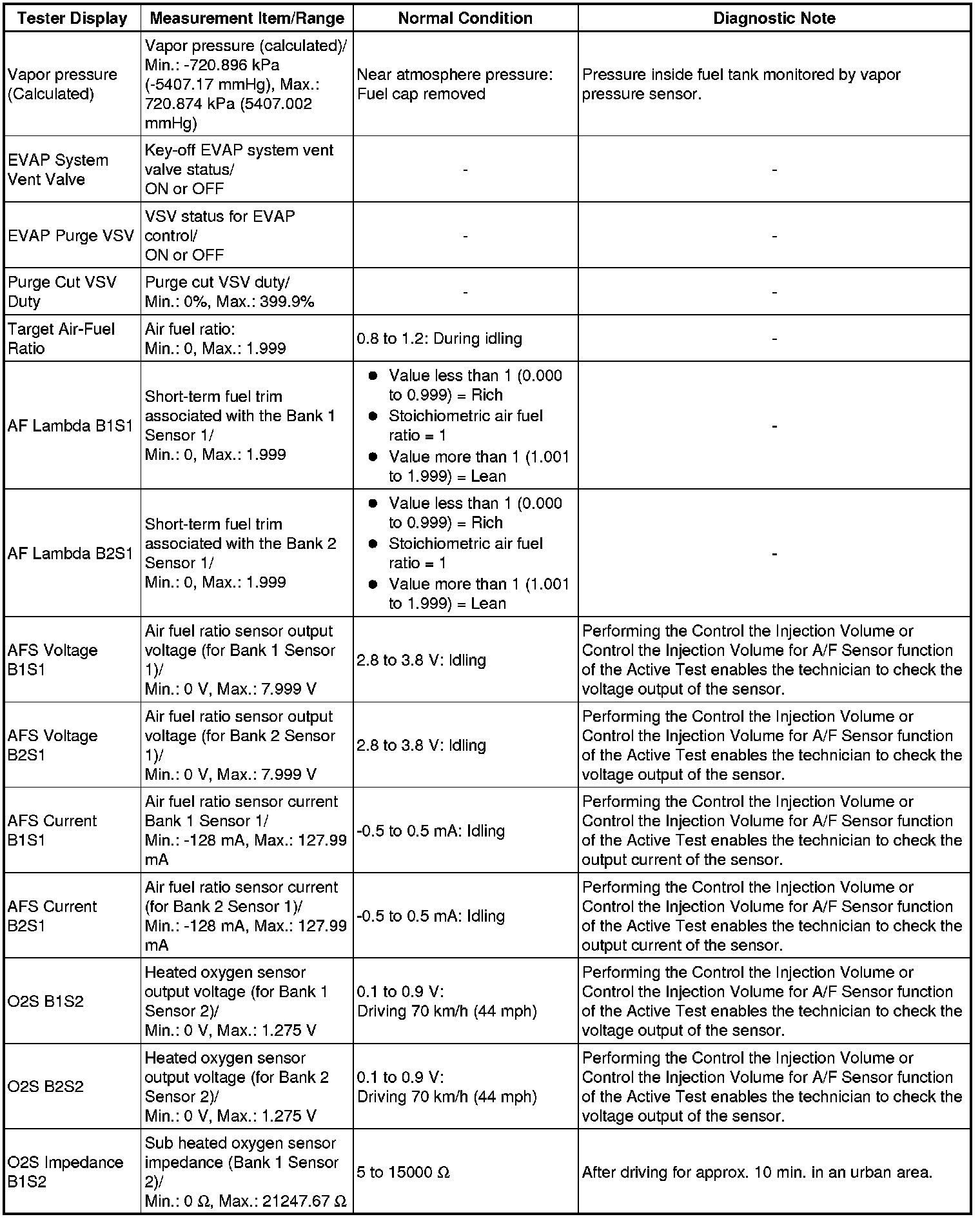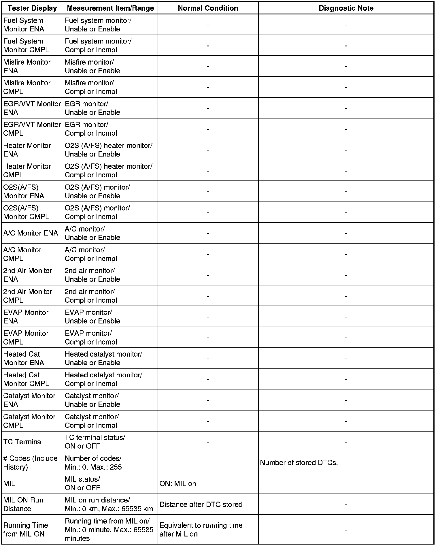 * Normal Condition: If no conditions are specifically stated for "idling", the shift lever is in N or P, the A/C switch is off and all accessory switches are off.