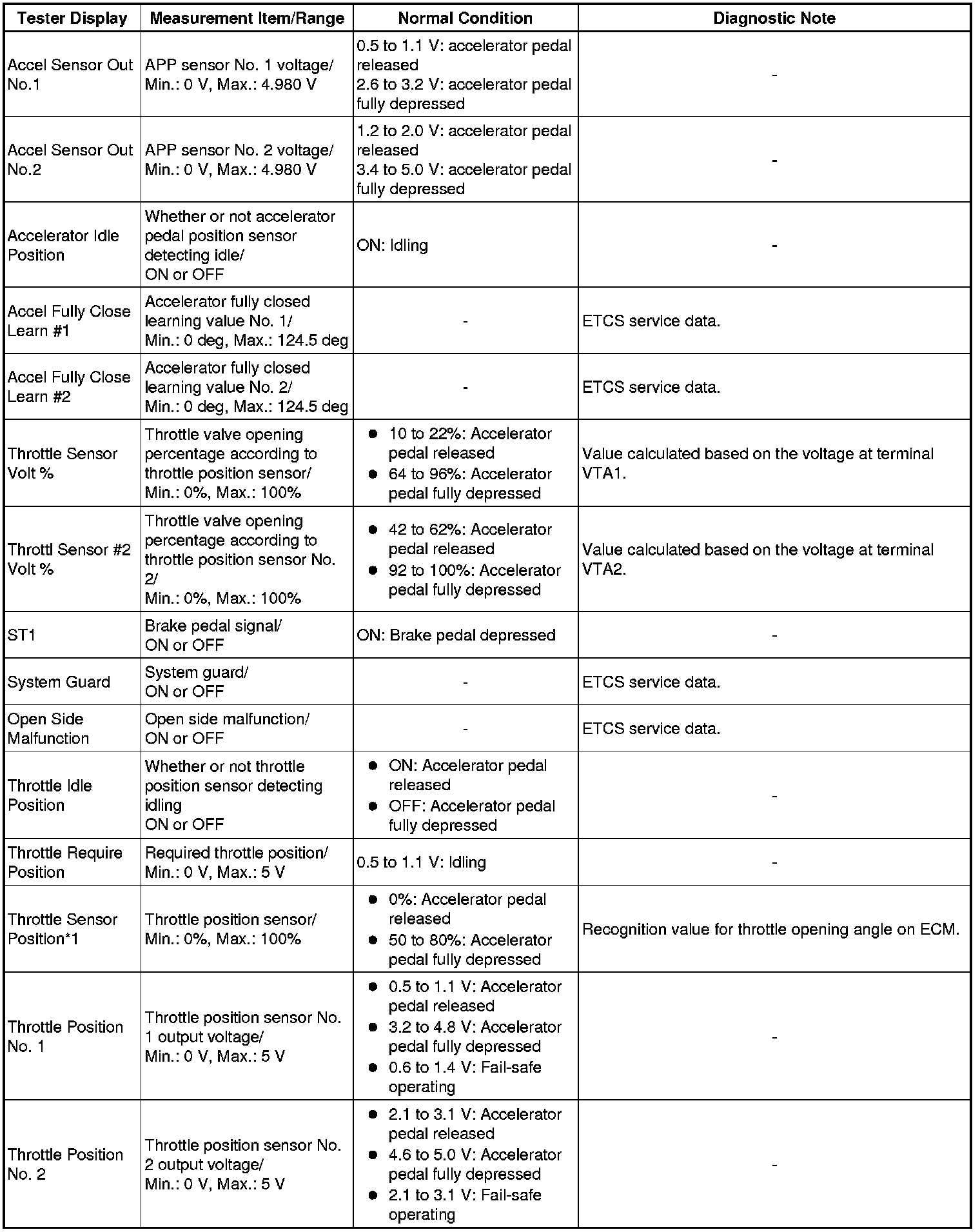 * *1: Excluding throttle valve opening percentage due to Idle Speed Control (ISC).