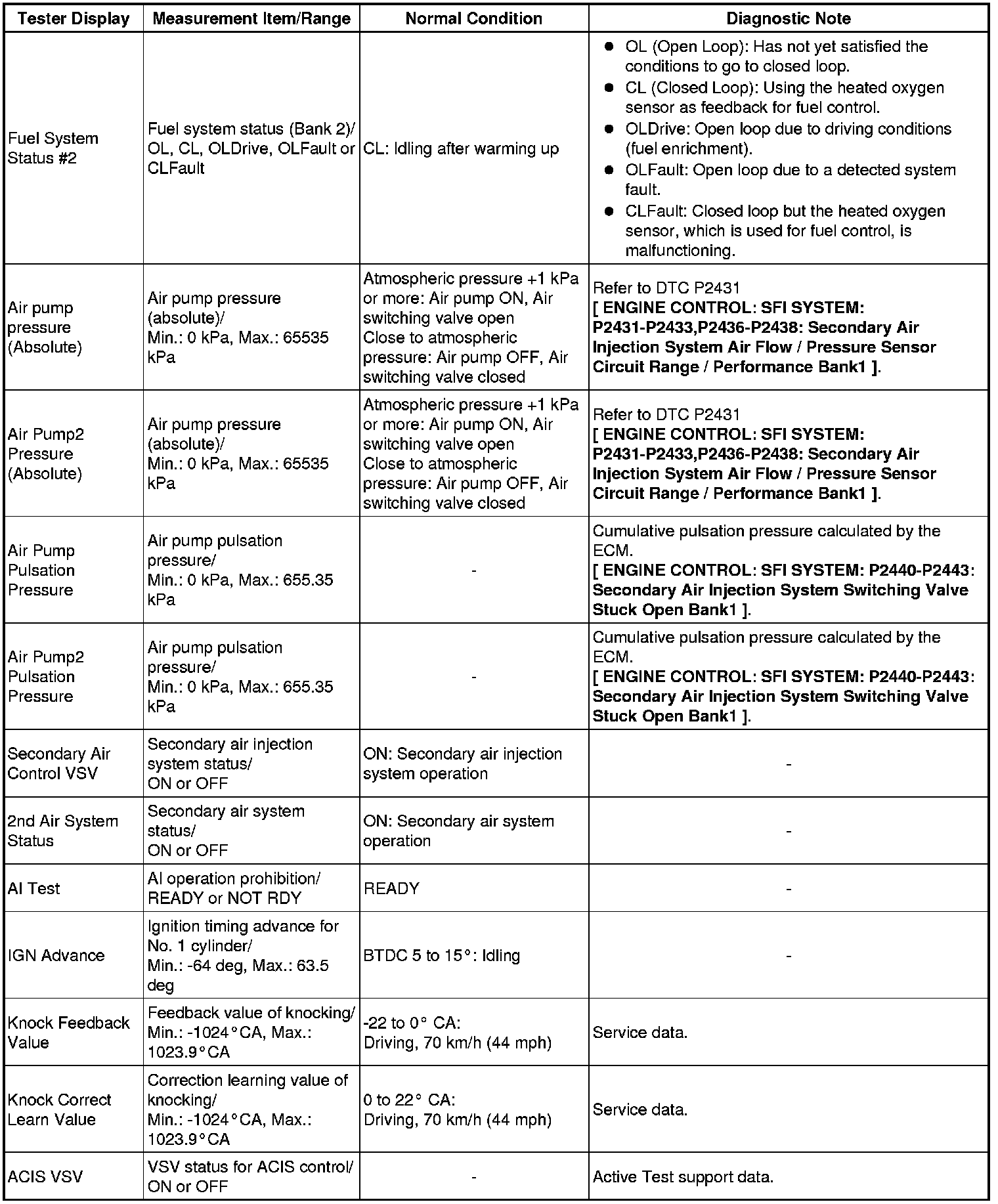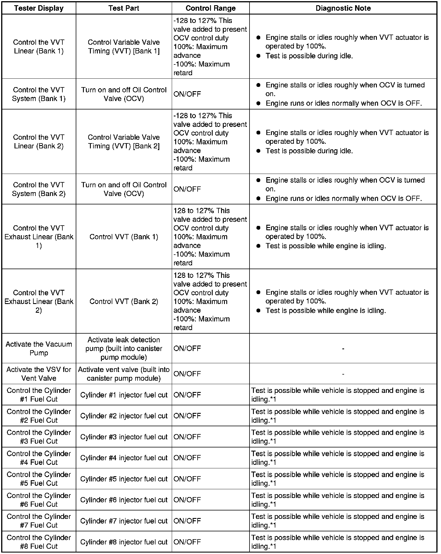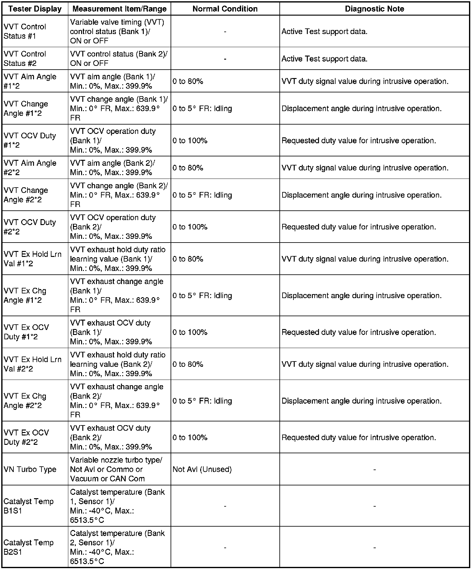* *2: Data List values are only displayed when performing the following Active Tests: Control the VVT Linear (Bank 1), Control the VVT Linear (Bank 2), Control the VVT Exhaust Linear (Bank 1) and Control the VVT Exhaust Linear (Bank 2). For other Active Tests, the Data List value will be 0.