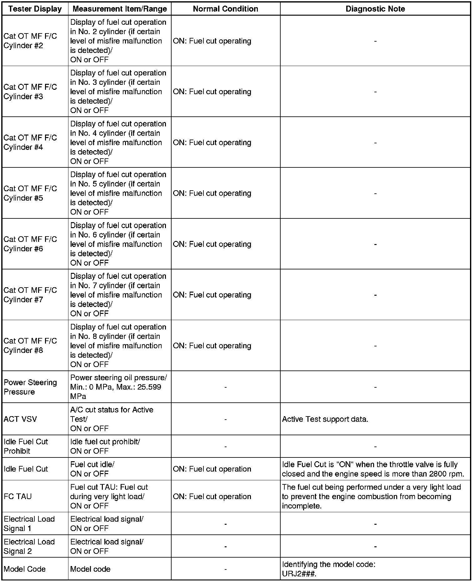 * *1: If the display of the Data List Catalyst OT MF F/C item is Avail, perform this Active Test as described below.