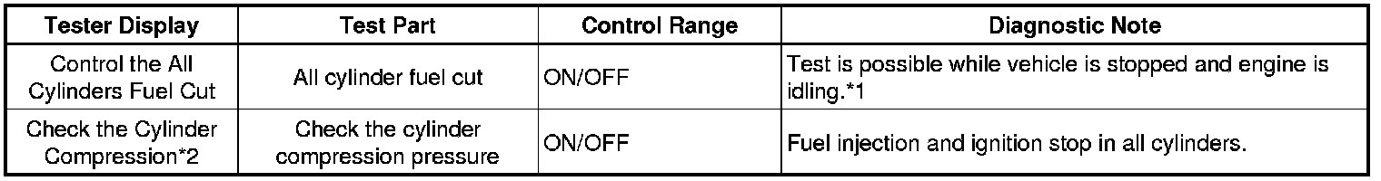 In this Active Test, the fuel and ignition of all cylinders is cut. The engine must then be cranked for approximately 10 seconds. At this time, the speed of each cylinder is measured. If the speed of one cylinder is more than the other cylinders, it can be determined that the compression pressure of that cylinder is lower than the other cylinders.