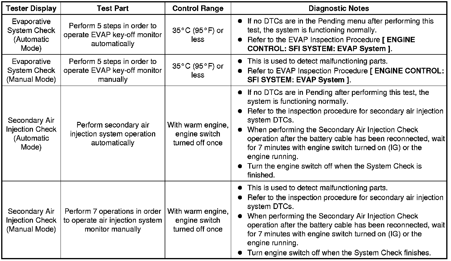 (e) Perform the System Check by referring to the table below.