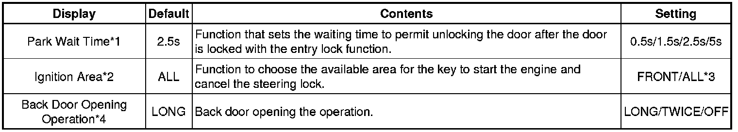 *4: Back door open mode when vehicle is locked.