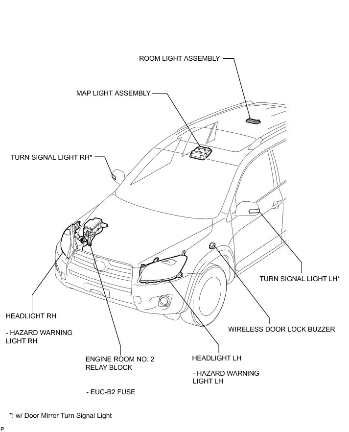 DOOR LOCK: WIRELESS DOOR LOCK CONTROL SYSTEM (w/o Smart Key System): PARTS LOCATION