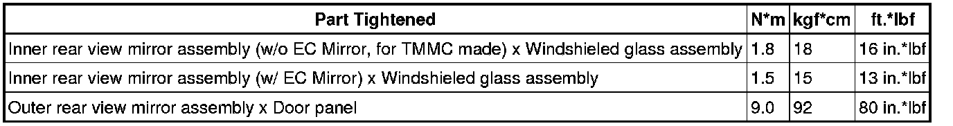 SERVICE SPECIFICATIONS: MIRROR: TORQUE SPECIFICATIONS