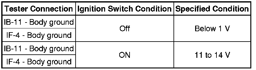 (a) Measure the voltage between the terminal of the instrument panel junction block and the body ground when the ignition switch is turned to ON and off.