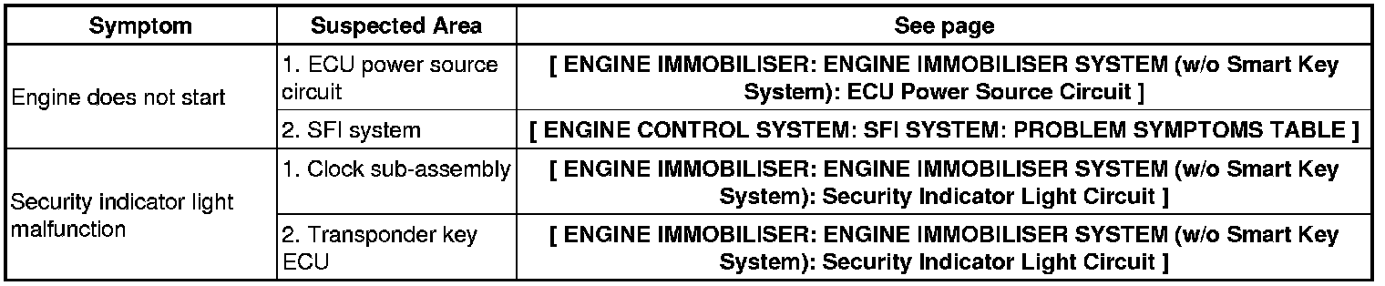 ENGINE IMMOBILISER: ENGINE IMMOBILISER SYSTEM (w/o Smart Key System): PROBLEM SYMPTOMS TABLE
