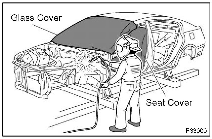 1. When welding, protect the painted surfaces, windows, seats and carpet with heat resistant, fireproof covers.