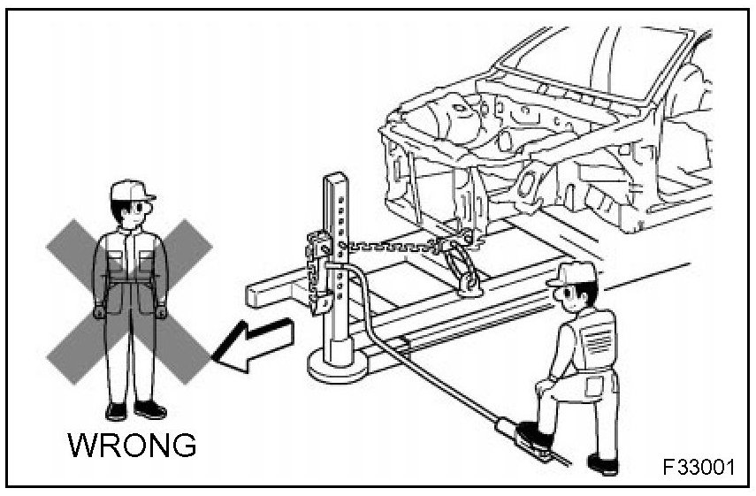 1. Never stand in a direct line with the chain when using a puller on the body or frame, and be sure to attach a safety cable.