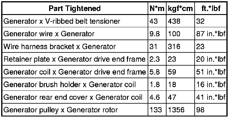 SPECIFICATIONS: 1UR-FE BATTERY / CHARGING: TORQUE SPECIFICATIONS