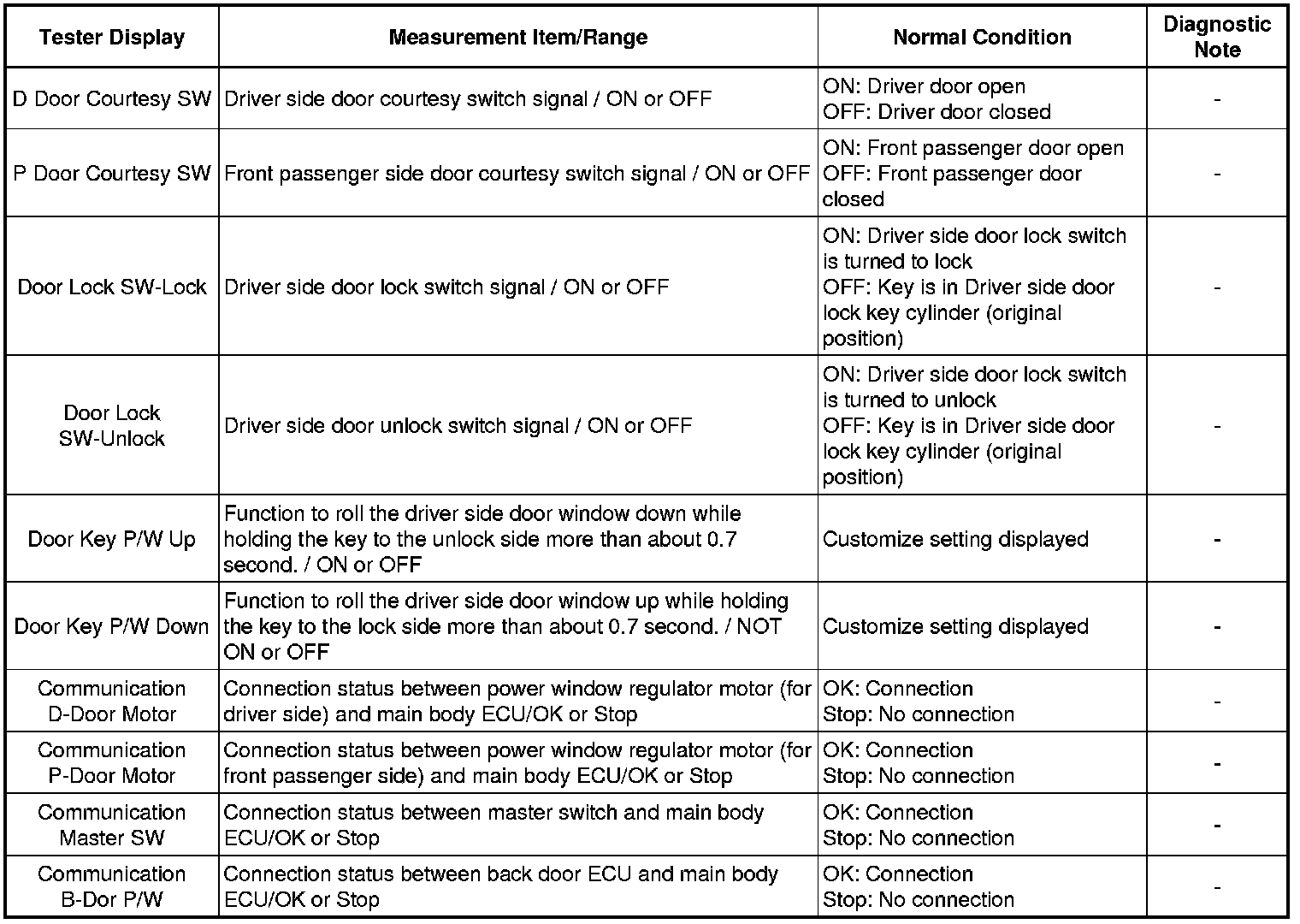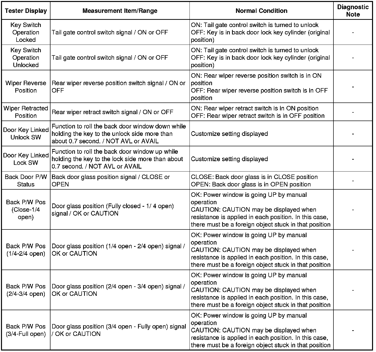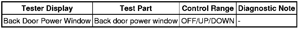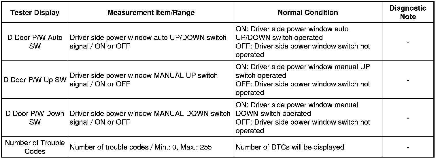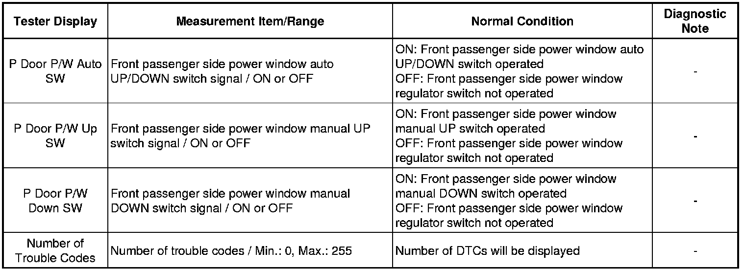 WINDOW / GLASS: POWER WINDOW CONTROL SYSTEM: DATA LIST / ACTIVE TEST