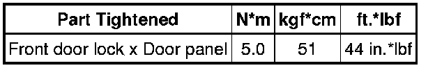 SPECIFICATIONS: DOOR LOCK: TORQUE SPECIFICATIONS