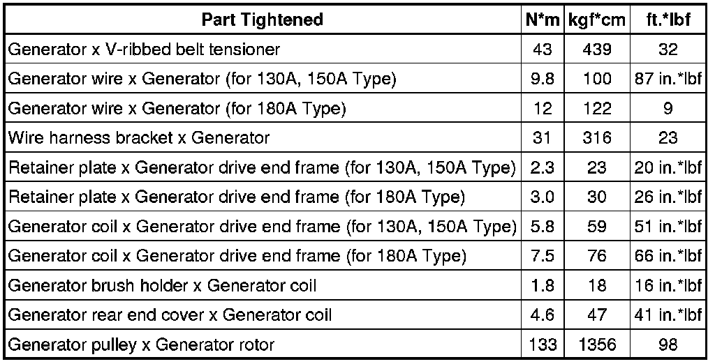 SPECIFICATIONS: 3UR-FE BATTERY / CHARGING: TORQUE SPECIFICATIONS